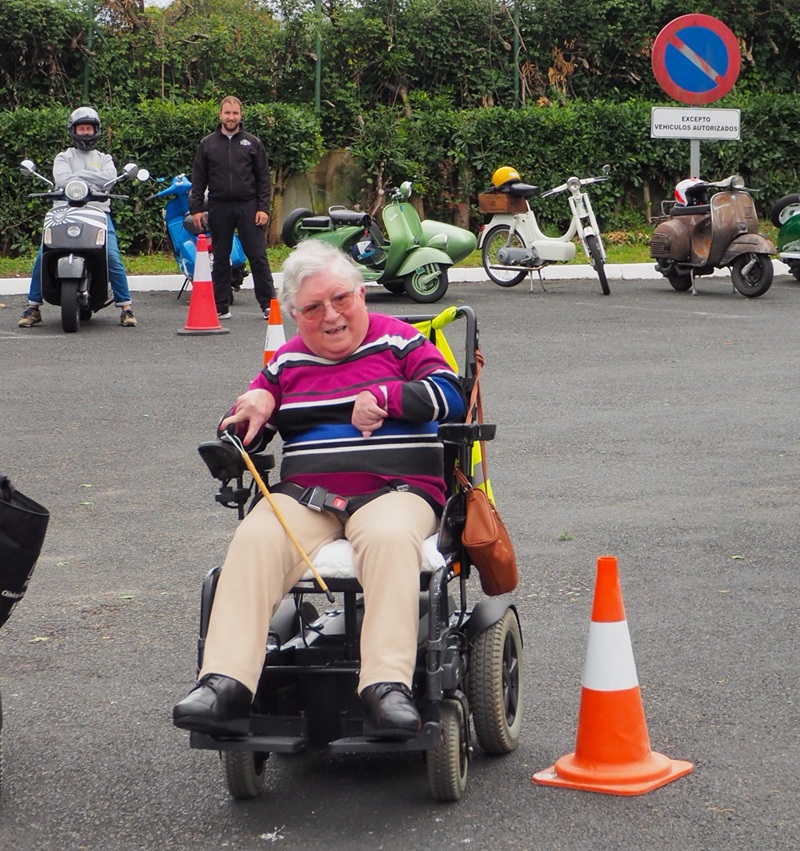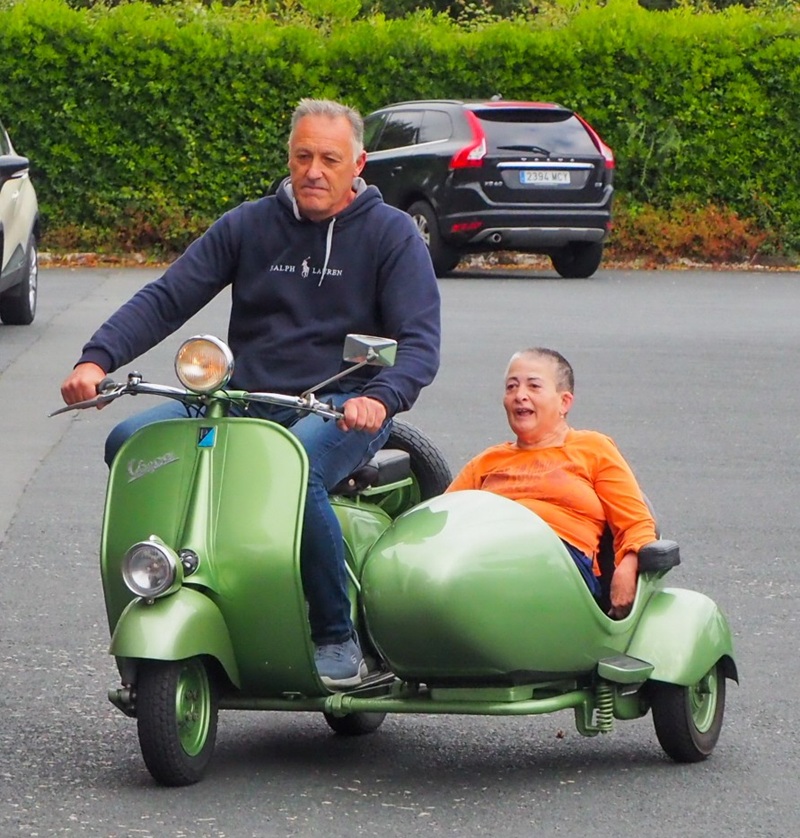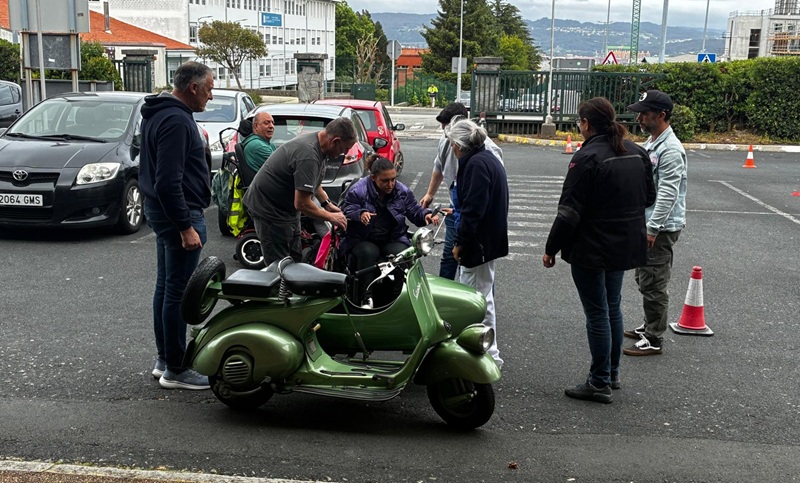 En el Centro de Atención a personas con discapacidad física (CAMF) de Ferrol, perteneciente al Imserso, se celebró una exhibición a cargo del Vespa Club Ferrol en el que las personas usuarias pudieron disfrutar de recorridos en circuito de la exposición de motos antiguas y, quienes así lo desearon, de un paseo en sidecar.