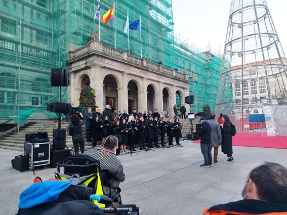 Para dar comienzo a los festejos de Navidad, varias personas usuarias del CAMF deI Imserso en Ferrol acudieron al encendido del alumbrado navideño del Ayuntamiento de Ferrol. Además, pudieron disfrutar de un concierto de villancicos a cargo de la orquesta Diapasón.
