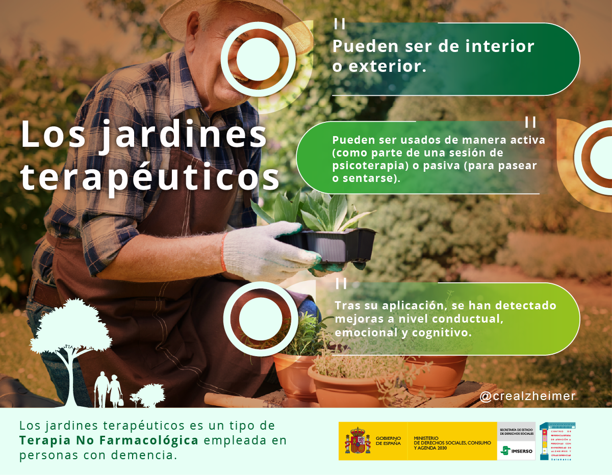 Los jardines terapéuticos es un tipo de terapia no farmacológica empleada en personas con demencia.