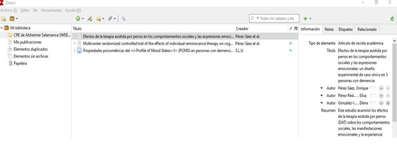 Por otra parte, tal y como se puede observar en la imagen anterior, Zotero se divide en 3 espacios bien diferenciados: